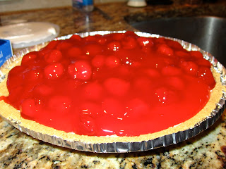 So these are your ingredients! Pie Crust, 8 oz cream cheese, hot fudge sauce, cool whip, sugar, cherry pie filling!